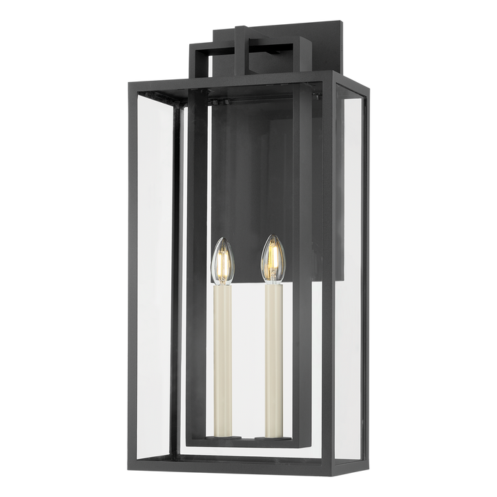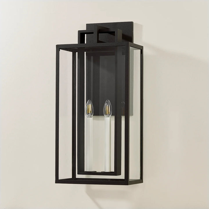 Amrie Outdoor Wall Sconce – Modern Elegance with Clear Glass & Textured Black Finish