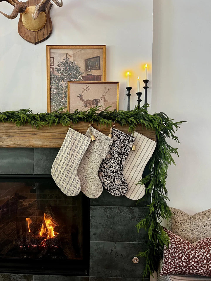 Christmas Stocking "Fold Over" Reindeer Linen Print